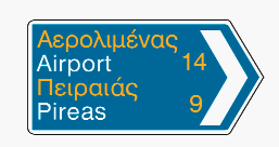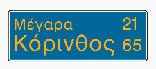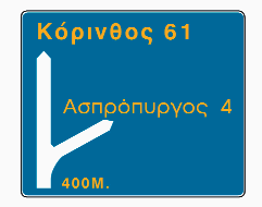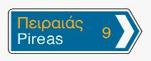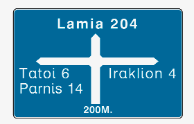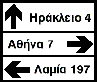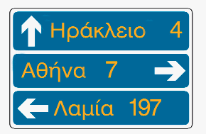 Προειδοποιητική κατεύθυνσης με αναγραφή κατευθύνσεων και χιλιομετρικών