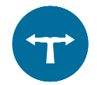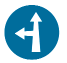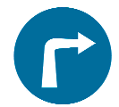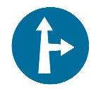 | (Ρ-50δ) Υποχρεωτική κατεύθυνση πορείας με στροφή δεξιά. | (Ρ-51α) Υποχρεωτική κατεύθυνση πορείας εμπρός ή αριστερά. | (Ρ-51δ) Υποχρεωτική κατεύθυνση πορείας εμπρός ή δεξιά. |