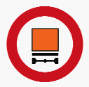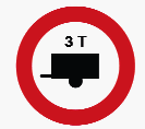 | (Ρ-62) Τέλος απαγόρευσης προσπεράσματος από φορτηγά αυτοκίνητα, που έχει επιβληθεί με απαγορευτική πινακίδα. | (Ρ-63) Απαγορεύεται το ρυμουλκούμενο όχημα να έχει βάρος μεγαλύτερο από (π.χ. 3) τόνους. | (Ρ-64) Απαγορεύεται η είσοδος σε οχήματα, που μεταφέρουν επικίνδυνα υλικά. |