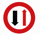 | (Ρ-4) Τέλος οδού προτεραιότητας. | (Ρ-5) Προτεραιότητα της αντιθέτως ερχόμενης κυκλοφορίας λόγω στενότητας οδοστρώματος. | (Ρ-6) Προτεραιότητα ως προς την επερχόμενη κυκλοφορία (λόγω στενότητας οδοστρώματος). |