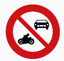 | (Ρ-19) Απαγορεύεται η είσοδος σε μηχανοκίνητα οχήματα. | (Ρ-20) Απαγορεύεται η είσοδος σε οχήματα ορισμένων κατηγοριών (π.χ. σε μηχανοκίνητα και ζωήλατα οχήματα). | (Ρ-21) Απαγορεύεται η είσοδος σε οχήματα συνολικού πλάτους που υπερβαίνει τα… (π.χ. 2) μέτρα. |